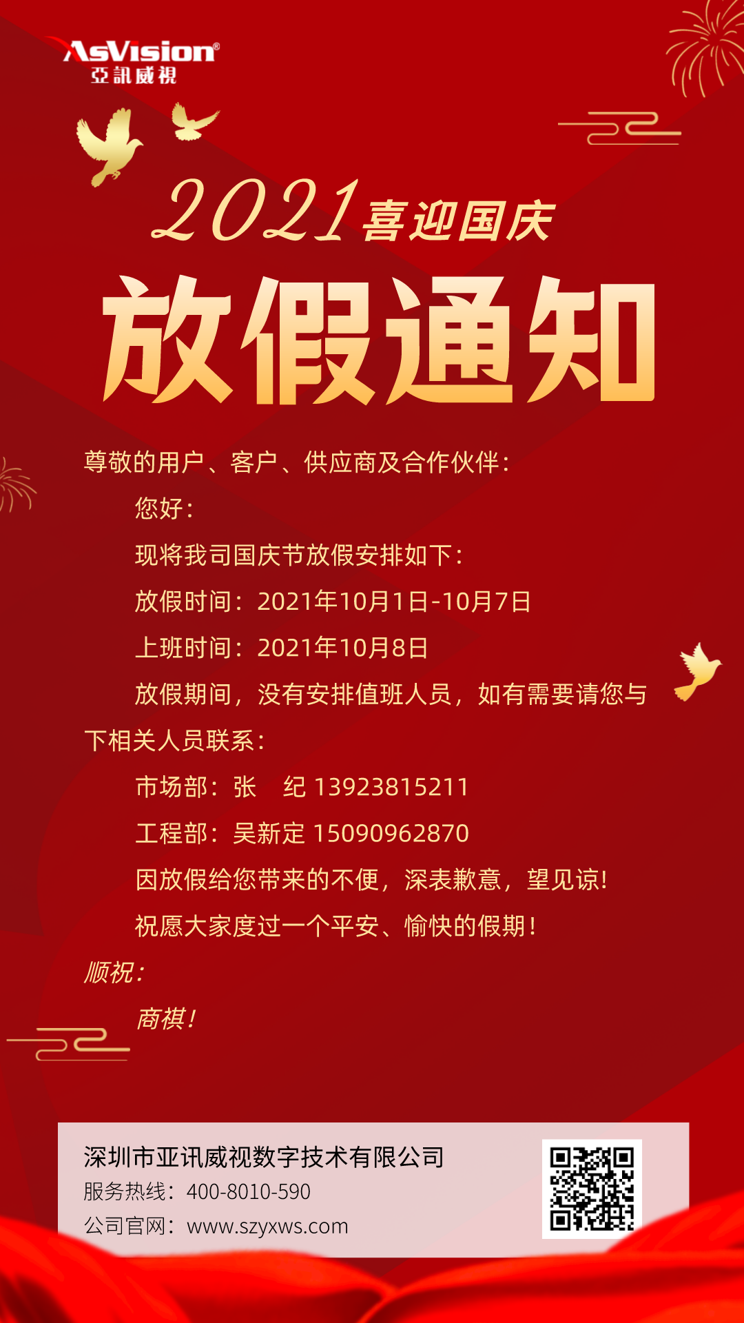 國慶假期放假通知!